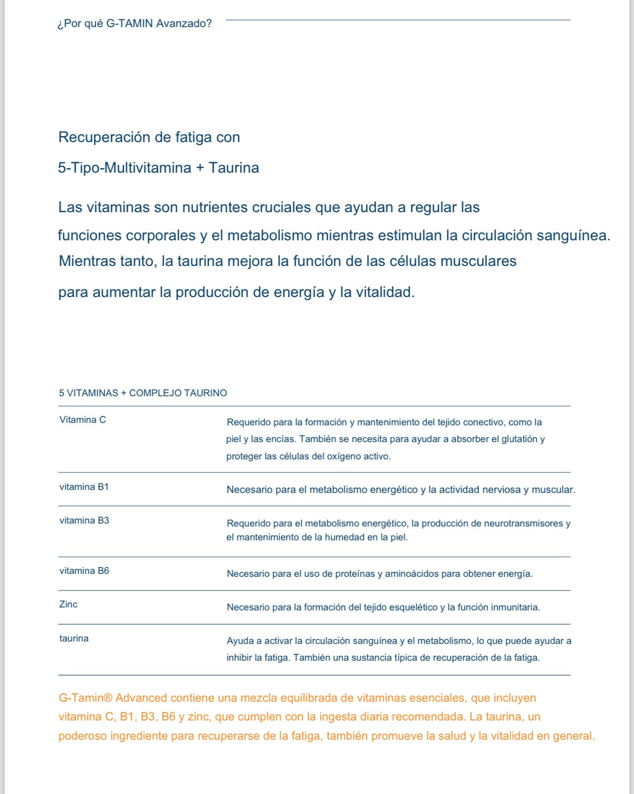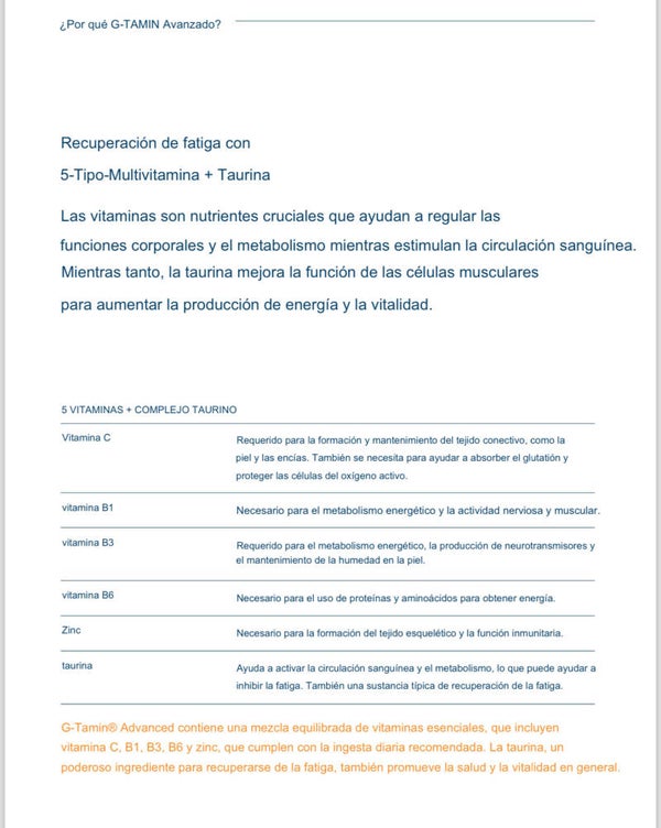 Diseñado para apoyar el bienestar general y aumentar los niveles de energía, G-Tamin es el complemento perfecto para cualquier estilo de vida saludable.